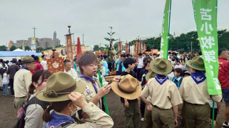 2025年7月16日、恒例の樽前山神社例大祭の渡御が例年の鉄北エリアから中央公園へと会場を移し、新たな形で行われました。私たちボーイスカウトは、この重要な祭りの一翼を担い、伝統の継承と地域との結びつきを深める奉仕活動に参加しました。