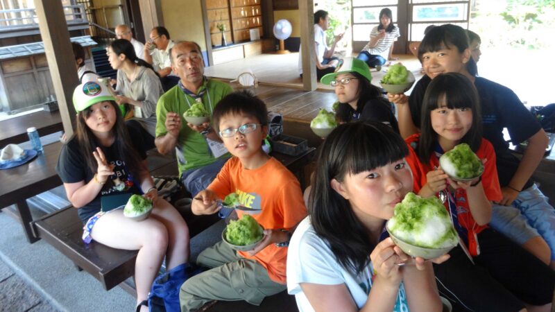 翌日は早朝からおはらい町通りを通り、宇治橋を渡って伊勢神宮内宮へ参拝の行進。神宮の清らかな空気に心を洗われる思いで、日頃の活動の安全と今後の成長を祈願しました。暑さを吹き飛ばすため、今回は赤福入りのかき氷を味わうという特別な体験もありました。その後は宇治神社、猿田彦神社、月読宮などを巡る史跡探訪を行いました。