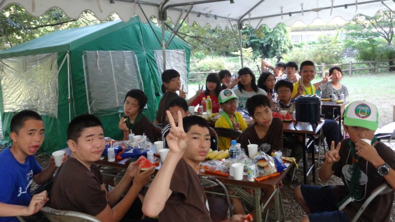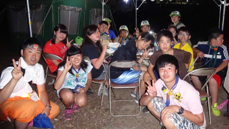 夜は全国から集まった地区のスカウト間の交流会が催され、中国・九州地区の出演による炭坑節の踊りや、台湾、マレーシアのスカウトによる民族舞踊、また日本の歌手によるミニコンサートなど、多彩なプログラムで大いに盛り上がりました。