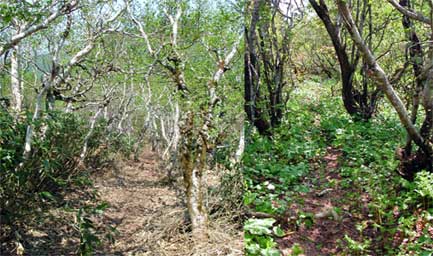 登山道です。現在の峠には、トイレのみがあり、売店の建物はなくなってしまいました。
