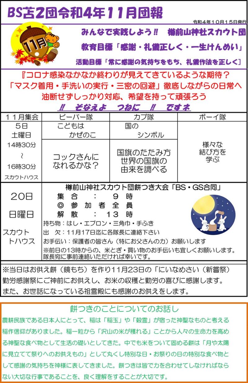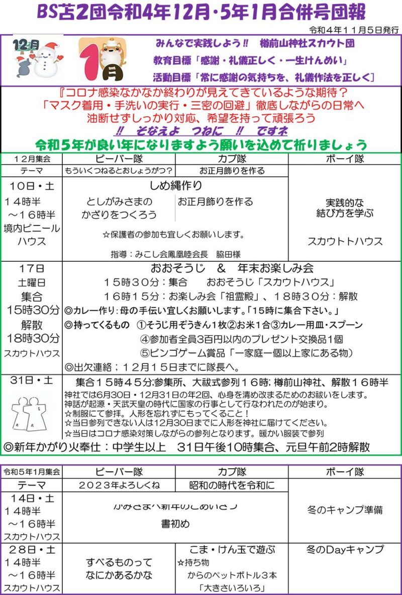 年間の団報の掲載です。一年を通じて楽しい集会が組まれています。12月と翌1月号が合併号となり、年11回の団報が発行されています。