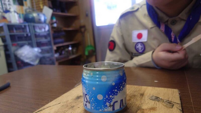 このようなアルコールコンロは、災害時の緊急調理やキャンプでのコンパクトな調理器具として非常に有用です。ボーイ隊では今回の失敗を踏まえ、空気穴を改良して再挑戦する意欲が高まっています。継続的な試行錯誤を通じて、安全で実用的なコンロ作りを目指す姿勢が育っていることは、隊の大きな成長と言えるでしょう。今後も経験と工夫を重ね、頼もしいアウトドアスキルを身につけていきます。