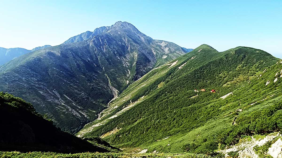 前岳から荒川小屋への下りから小赤石岳と赤石岳