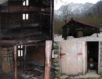 小屋外壁は石積みで、屋根は雪の重みで壊れたのか屋根組が新しい木で修理されていた。トイレも小屋の中も決して綺麗とは言えないが、ストーブもあり歴史のある避難小屋のようだ。