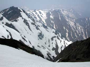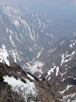 山頂から本谷を覗くと「おお!」と声が出そうになる。高さといい、眺めといい、谷の深さといい最高の眺め。