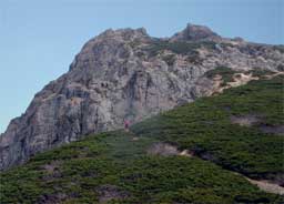 何で?あきらめて直登してみると、どこを登っても正解のようである。岩場なのでどこからでも登れる。