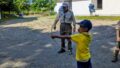 当日は晴天に恵まれ、まぶしい新緑に包まれた午後2時30分から集会がスタートしました。森の静けさと心地良い風の中、スカウトたちはぶり縄づくりに挑戦しました。ぶり縄とは、木と木の間に縄を渡す技術で、様々な応用が可能な重要な基本技能です。子どもたちは指導者の助けを借りながら、縄の結び方や張り方を学び、実際に森の中で縄を張る作業を行いました。