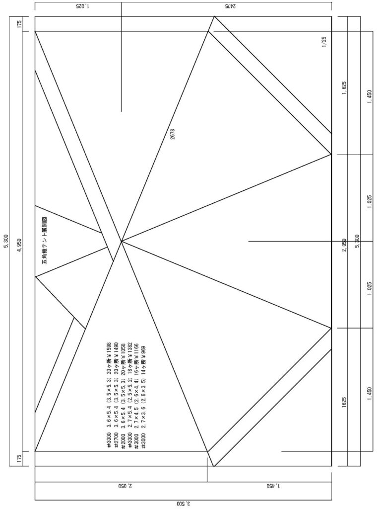 モノポール五角錐テント展開図