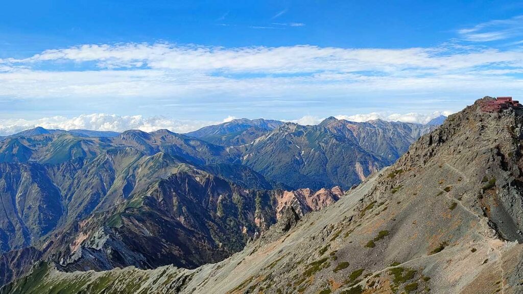 槍ヶ岳山荘から裏銀座の山々