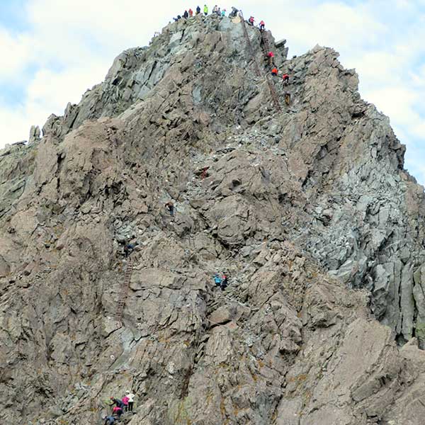 14時40分、槍ヶ岳山荘に到着。冬に一度宿泊したことがありますが、無雪期の賑わいもまた良いものです。受付を済ませ、荷物を置いてすぐに穂先へ向かいました。