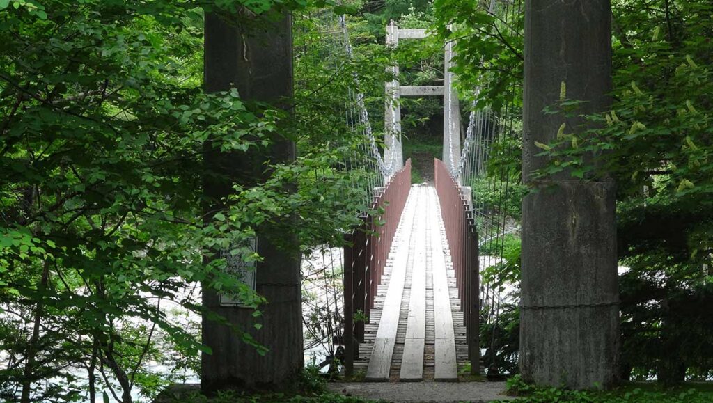 横尾からは、梓川沿いの平坦な道をひたすら歩きます。途中、一般の登山者はまず渡ることのない「新村橋」を横目に通り過ぎます。奥又白池や前穂高岳東壁を目指すクライマーたちが使う、どこかストイックな雰囲気の漂う橋です。