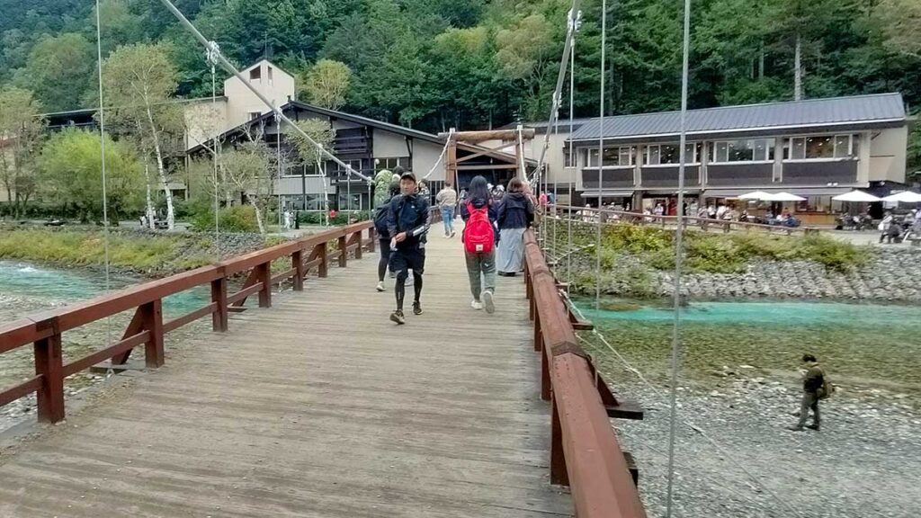 徳澤からさらに1時間足らずで明神に到着。明神岳の雄大な姿を仰ぎ見ながら、旅の終わりが近いことを悟ります。ここからの道は観光客の方も多くなり、挨拶を交わしながら河童橋を目指します。
