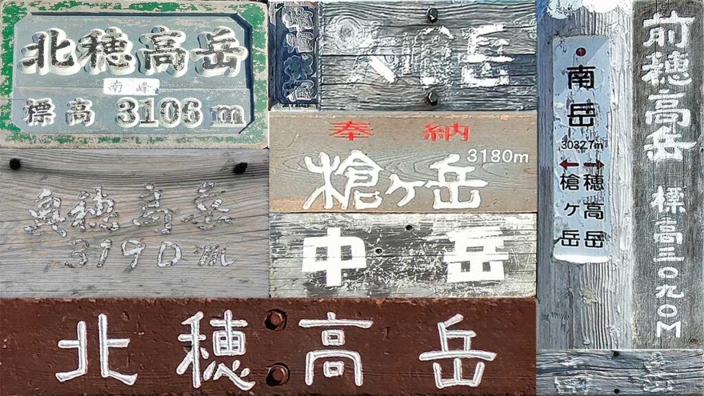 前穂高岳・奥穂高岳・北穂高岳・南岳・中岳・大喰岳・槍ヶ岳のプレート