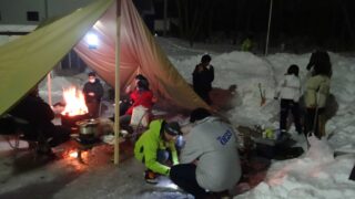 その後は、テントの撤収に移ります。ポールやペグ、ロープなどの小さな部品をなくさないように、一か所にまとめて丁寧に片付けます。それぞれが役割を意識して行動し、スムーズに撤収が完了。最後に全員で周囲を点検し、来たときよりもきれいな状態に戻しました。