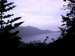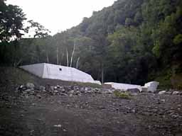 砂防堤上にある結構な広場を横切るとしばらく林のコースとなり、ロープ場までに展望の有るところは上中写真の場所だけです。