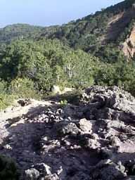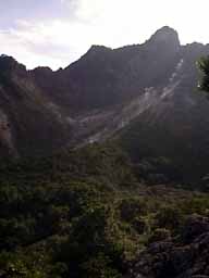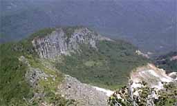 左中は山頂付近を登山道から見上げたところですが、ほぼ垂直で、落石が有ったら逃げられません。