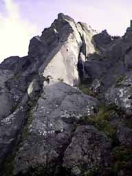 右上の写真を見ると、どうやって頂上に登るのかなと悩む山頂岩頭部です。
