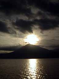 右下は、魚川から見た恵庭岳と支笏湖を挟み夕日の沈む恵庭岳です。