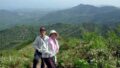 下中の写真は、見晴台から見た噴煙の上がる爆裂火口と山頂です。下から眺めるとかなり上に見えますが、60分程度で山頂に着くと思います。