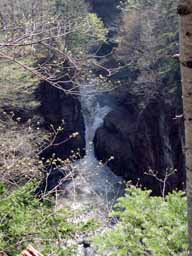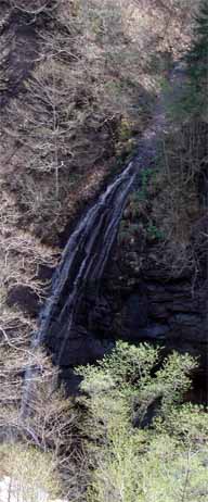 駐車場から遊歩道を下ると直ぐ滝が見える。見どころは、少し奥の滝落ち口付近の渓流、落ち口、滝正面と幾つかある。