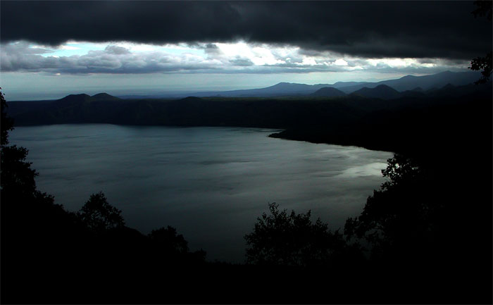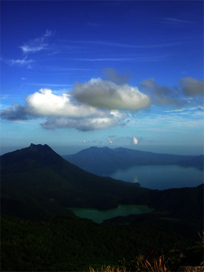 恵庭岳西沢から夕闇の支笏湖  ’01.09.24