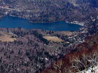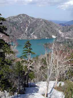 左上は湖畔から登山口方向です。湖畔沿いに残雪があったので、楽に来られます。
