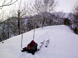 私は、山頂手前50m地点でスキーを断念し、ツボで登りました。