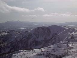 登頂した気持ちの「やった!」と相まって、札幌方面は「何じゃこれ」と思うほどの緩斜面です。地図では確認していましたが、予想に反していました。