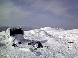 この2枚の写真は、1,175mからの写真です。頂上は目の前に有るのですが、白一色のため地図を見ないと高度感覚が有りませんでした。どこに行くのにも地図とコンパスは必要です。