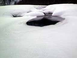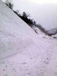 右上の写真ですが、春先の暖かい午後になると、雪崩の前兆が現れてきます。表層の雪に木々に積もっていた雪が落ち、傾斜角の強い所では拳大や頭大の固まりが連続して転がり落ちてきます。やがて表層雪崩と成っていきます。道路際でも気を付けて下さい。