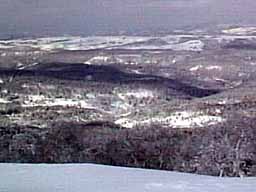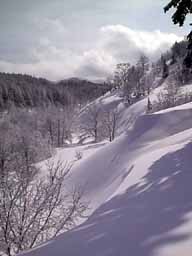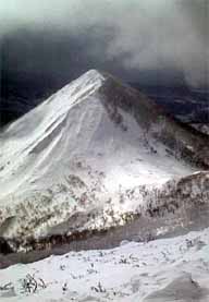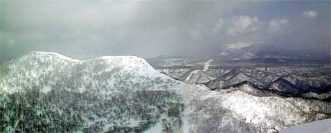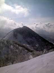 このピークから見て、左半分の雪は風下になるのか柔らかめです。右半分は榛松帯と風に飛ばされるのか堅めです。登るスタイルによって選んで下さい。ツボ足での左側は大変きついものがあります。