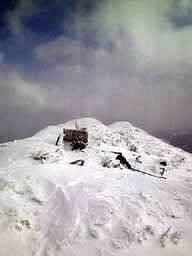登山者の少ない割には、立派なプレートがありました。それにしても、降雪後の登頂には思った以上の時間を費やしました。