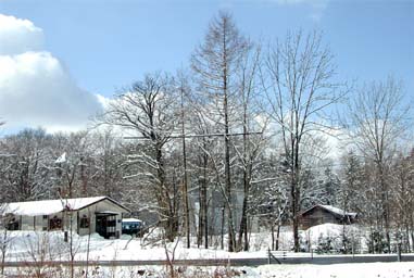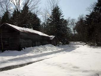 どちらの駐車スペースからも国道を横断しなければならないので、車の往来には十分の注意が必要だ。スキー・スノーシューは 森林管理署の丸山休憩所付近で履くとよい。休憩所前を過ぎると車庫があり、その西側に第2縦断林道をさえぎるゲートがある。