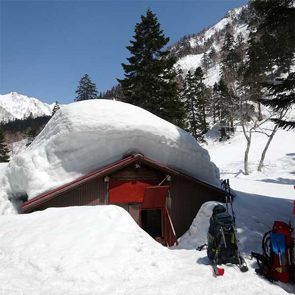 5/1 槍ヶ岳山荘7:15-7:25飛騨乗越-8:05分岐-9:15槍平小屋-9:50滝谷避難小屋-10:10チビ谷-11:15白出沢-11:55避難小屋-12:35新穂高岳温泉駅