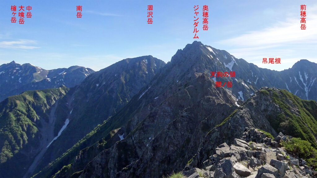 奥穂高岳◆(岩稜大縦走コース)丸山~西穂独標~ピラミッドピーク~西穂高岳間ノ岳天狗ノ頭ジャンヌダルム~奥穂高岳(パノラマコース)