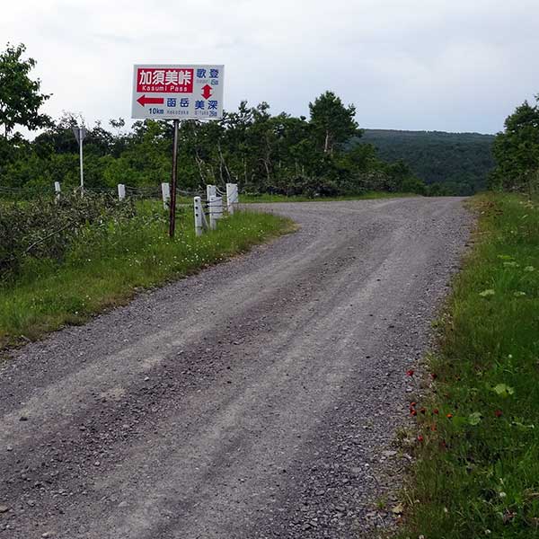 林道入口から約17km、深い森の中を走り抜けると「加須美峠」に到着します。ここは美深側と歌登側を結ぶ分岐点。ここを左折し、さらに山頂を目指します。美深市街からは実に約38km。標高が上がるにつれ、視界がパッと開け、まるで空の中を走っているような感覚に陥ります。