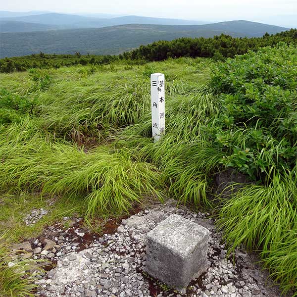 山頂に立つと、そこには威風堂々とした「一等三角点」が設置されていました。点名は漢字で「凾岳」。この山は北海道百名山の一つであり、その名前の由来は、山頂付近の岩の形が「箱」に似ていることからきているといわれています。