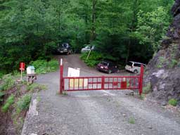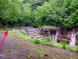平日の行動ですので、山荘に人がいるか疑問でしたが、出立2分後に車が到着したので一安心で小雨の中長い車道を黙々と進行です。幌振橋を過ぎ、小滝を右に見ながら進むこと1時間15分で取水ダムに着く。車が3台ほど止まっているがどうして?北電の巡回車三台とは先ほどすれ違ったし・・・・・・・・