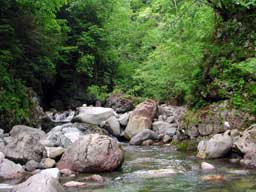 渡渉点を過ぎると「心洗の滝」が右岸に見えますが、川の音の方が大きいので、前進ばかりを考えていると見落とすかも知れません。岩の字も薄くなっていますので。目印を見ながら十数回の渡渉を繰り返しますが、沢に慣れているのであれば、自分の判断で行動した方が早いと思います。山荘は、かなりの人数が泊まれますが、予約のないツアーが入ると大変です。時間を無視しての来訪は頂けません。