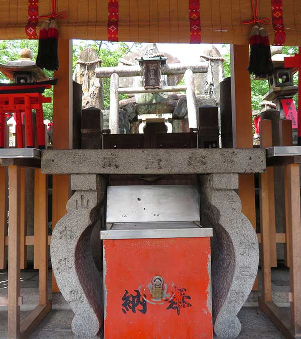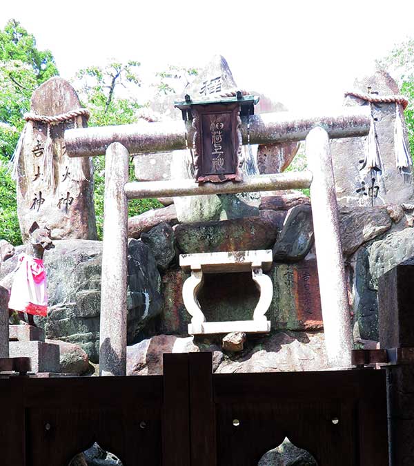 神蹟とは、昔に神が宿っていた場所であり、昔は祠や社殿があった場所のことで、 昔は稲荷神を含めて、神々が降臨した場所があり、伏見稲荷大社は稲荷山山中にありました。 現在では焼失し大きな石に注連縄しめなわが巻かれて祀られています。稲荷山中に7つの神蹟(一の峰(上社)・二の峰(中社)・三の峰(下社)・間の峰(荷田社)・御剣社(長者社)・御膳谷・荒神峰(田中社))があり、現在も祀られています。