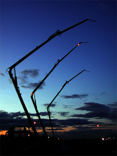夕暮れに大型高所放水車 ’03.10.10