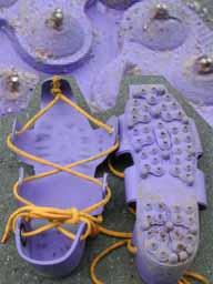 下にあるのがスパイクの付いた携帯靴です。製造は大同石油㈱で、石井スポーツ北12条店で5,350円で購入しました。今回は、ゴアの登山靴に付けての行動でしたが、スグレモノです。ただし、紐は石などに擦れると切れますので、換えが必要になります。