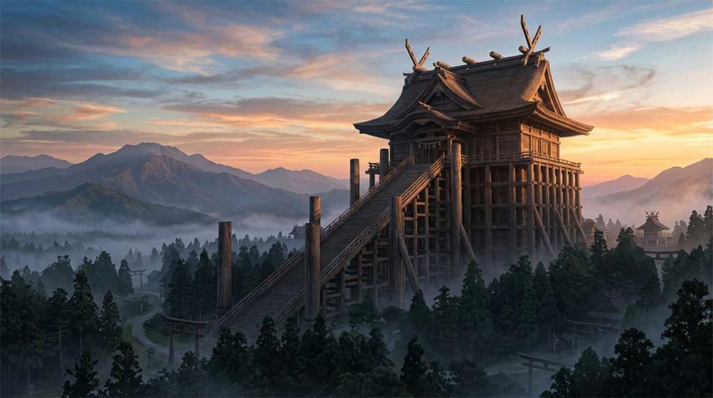 真実:なぜこれほど異常な巨大建築が必要だったのか。考古学や歴史学の一部では、これは出雲への敬意ではなく、「強大な祟り神」と化した敗者(大国主)を、物理的に巨大な建造物で抑え込み、地上に現れないよう封印するためだったという説がある。