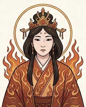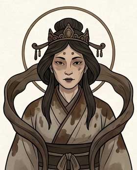 伊邪那岐命とともに国生み・神生みを行った創造神であり、最初の夫婦神の妻です。火の神(カグツチ)を生んだ際の火傷で亡くなり、黄泉の国へ去ります。彼女を追ってきた伊邪那岐との決別の際、地上の人間を毎日千人殺すと告げたことから、死を司る「黄泉津大神」となりました。生と死の輪廻の始まりを象徴する、日本神話における母性的な根源神です。