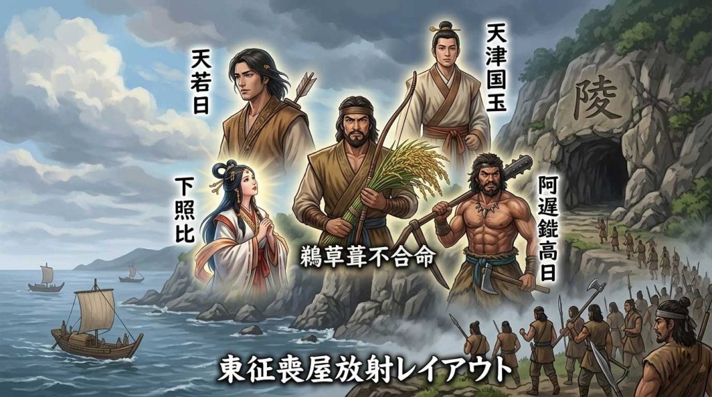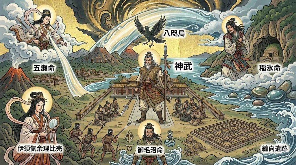 歴史的視点: 日向から大和への「移動」は、弥生時代後期の瀬戸内海沿岸の勢力図の変化と一致します。軍事指揮官としての性格が強まり、神話が「戦記」へと変質していきます。