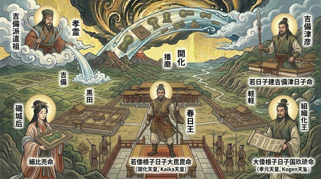 歴史的視点:纒向(まきむく)遺跡などの巨大集落の発生時期と重なります。在地勢力(葛城氏などの祖)を「土蜘蛛」として排除、あるいは婚姻で取り込み、大和盆地を制圧した権力闘争の結末です。