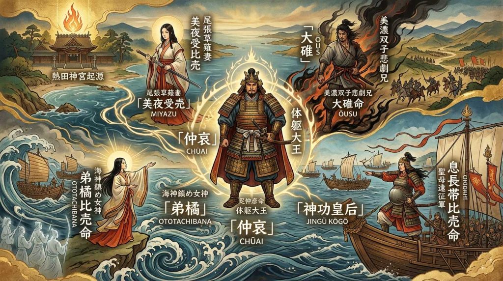 熊襲(九州)征伐や、神の託宣を巡る対立など、次代の神功皇后による海外遠征へと繋がる動乱の予兆を含んでいます。