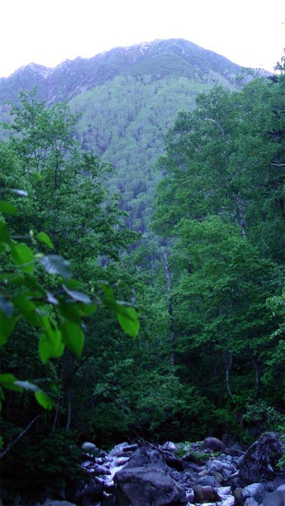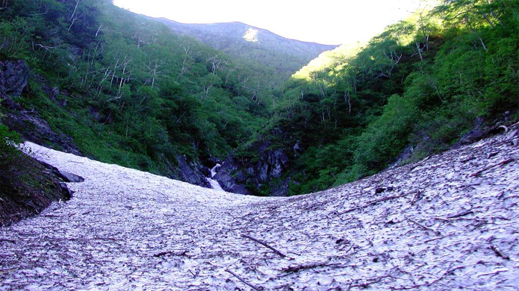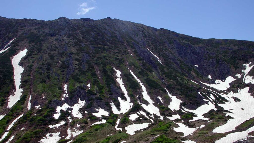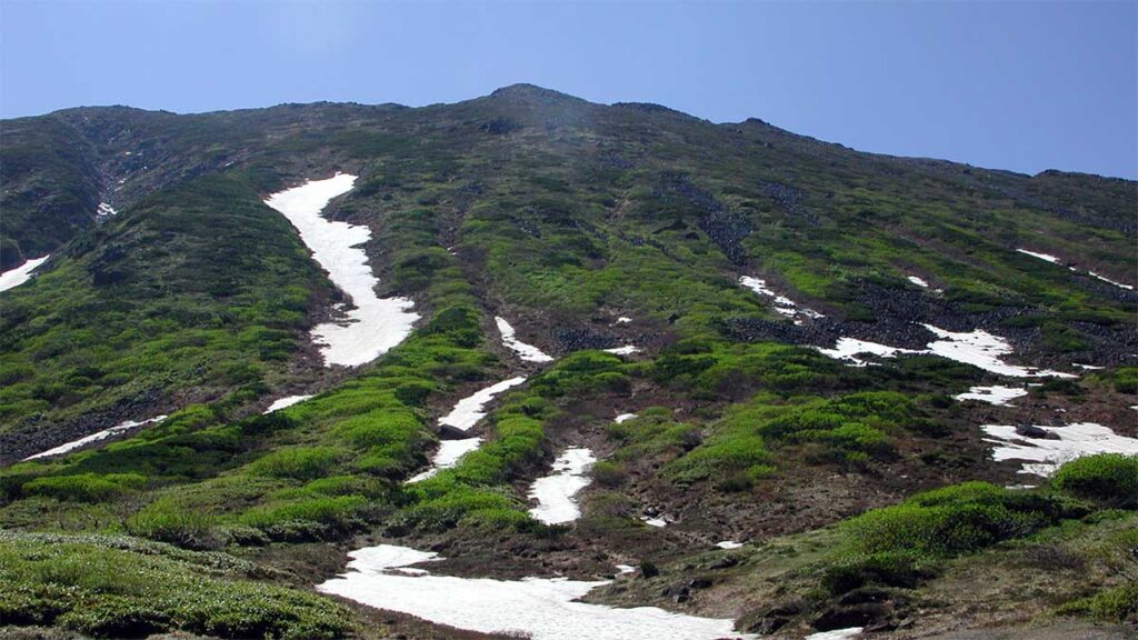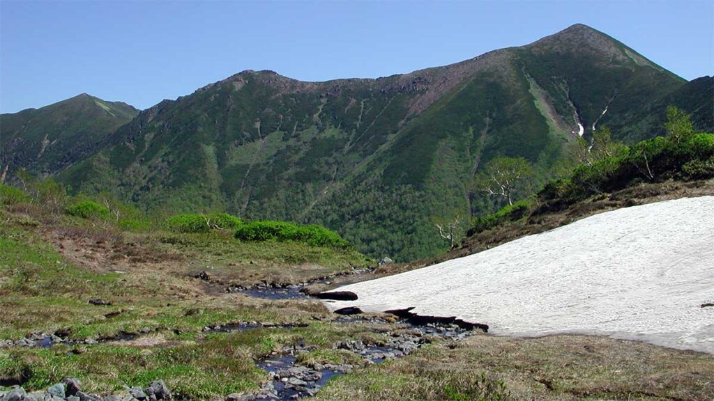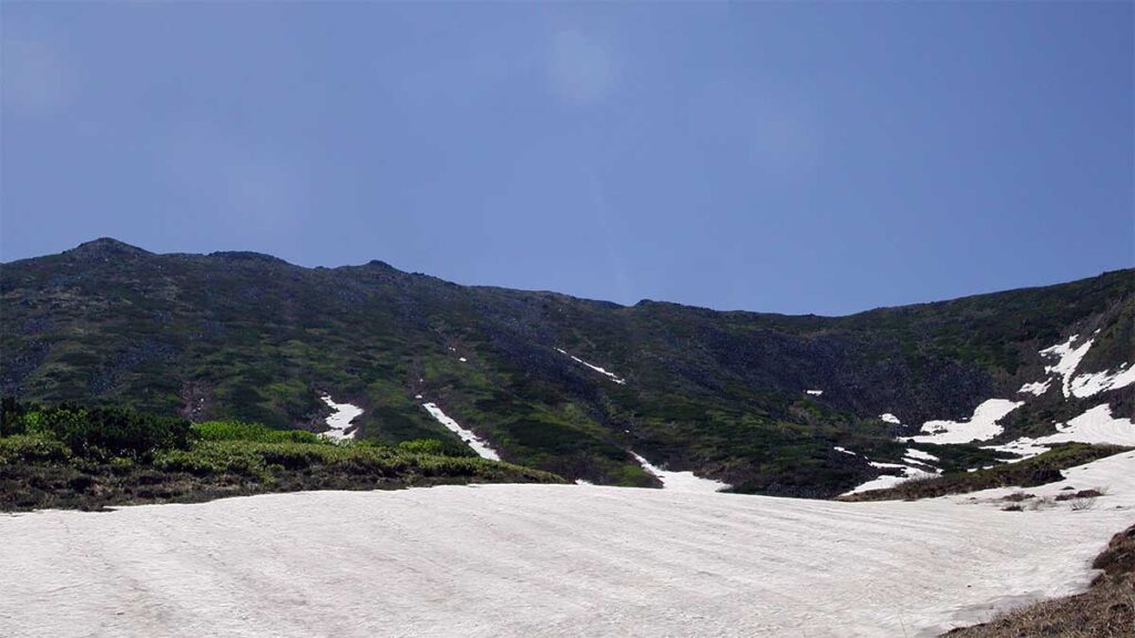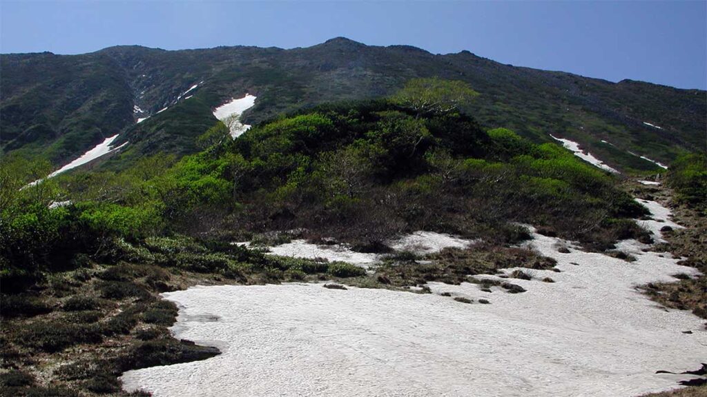 6月27日の景色だが、残雪か多く残っていた。花も咲いていたのだろうが、熊に注意を払いすぎて、一枚も花の写真が残っていない。