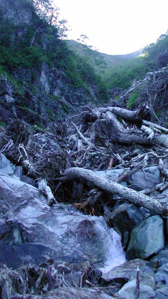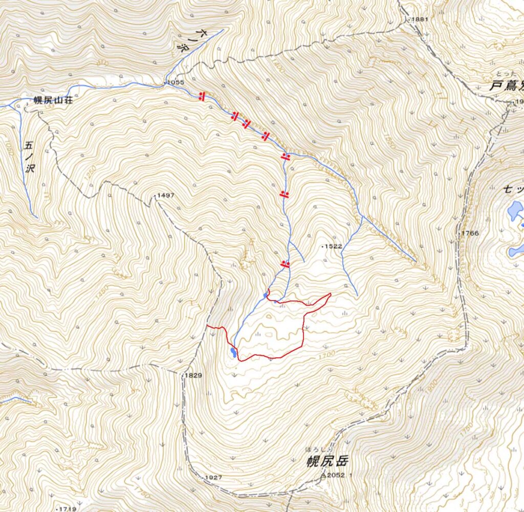 川の合流地点にあったF5から北カールの出るまで約2時間かかっている。幌尻山荘から約4時間以上かかっている。