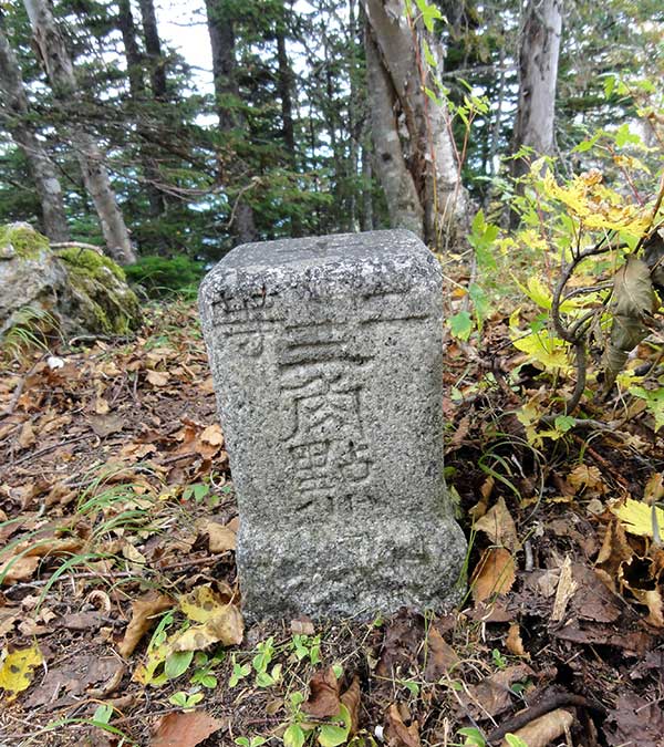 山頂に着いてプレートは確認できたものの、展望は全くなく、これがなぜ北海道百名山なのか疑問に思った。二等三角点はあるのだが・・・